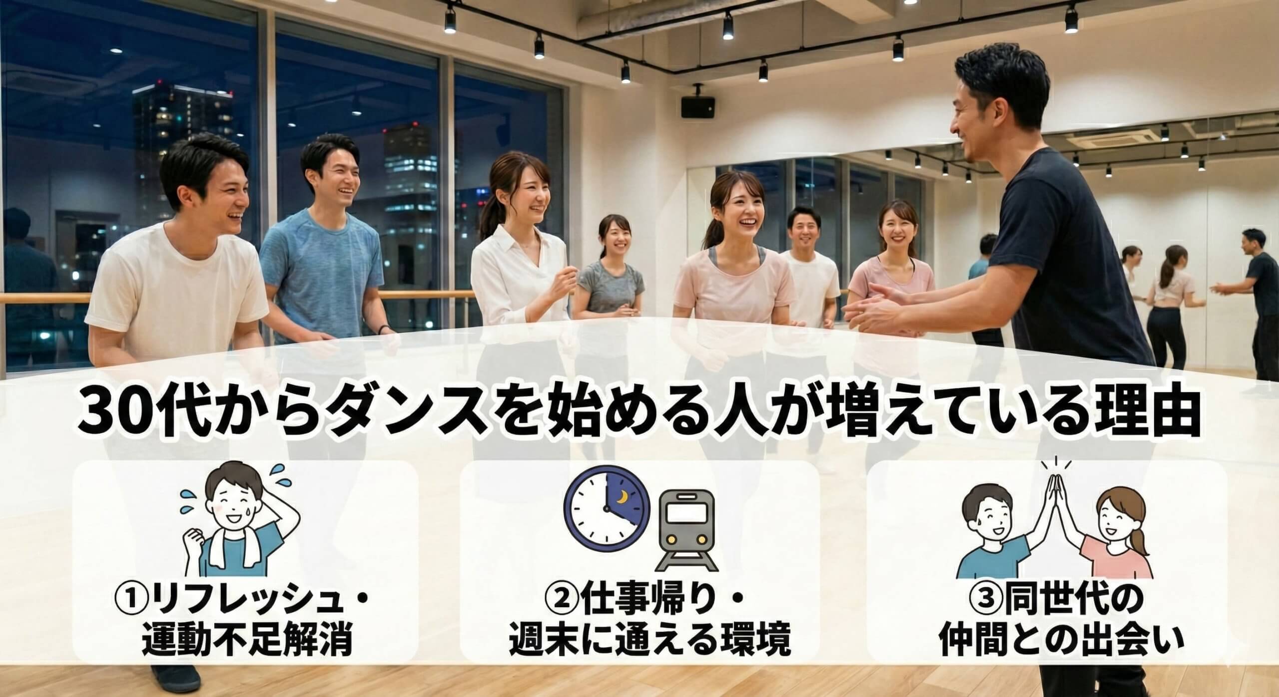 30代になってから「ダンスを始めてみたい」と思っても、年齢や体力、周りの目が気になって一歩踏み出せない方は少なくありません。